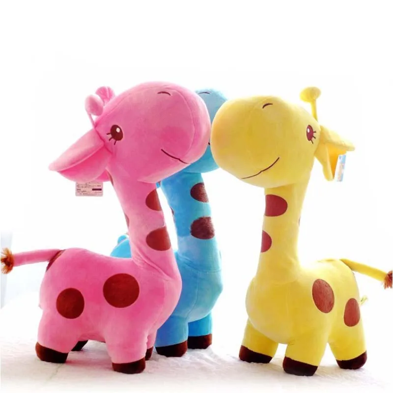 Super cute giraffe stuffed animal. Comes in one size (18cm) and in a variety of colors; blue, green, pink, yellow, purple. Perfect gift for baby showers or birthday parties. Children and adults will love this adorable toy.